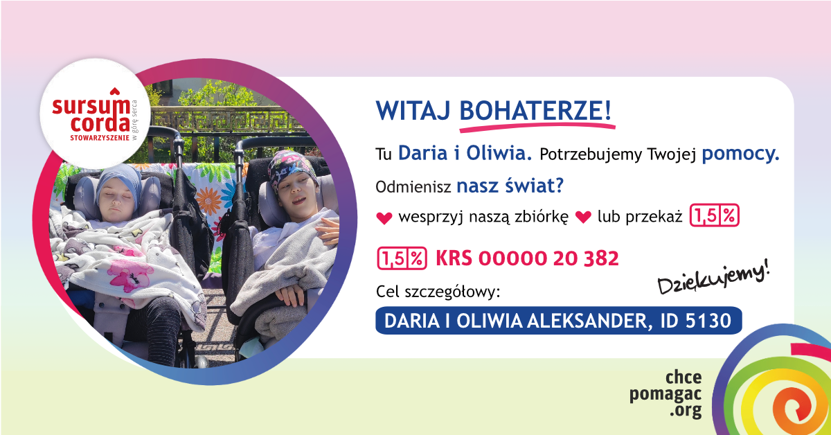 5130 Daria i Oliwia Aleksander Wsparło: 3Promuj zbiórkę na swojej stronie