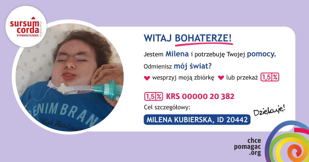 Milena od ponad dekady dzielnie walczy z chorobami. Urodziła się z oznakami niedorozwoju fizjologicznego, z powodu patologii serca oraz niedotlenienia i niedokrwienia ośrodkowego układu nerwowego.